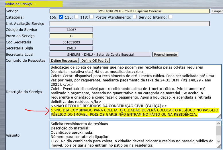 Informação atualizada na carta de serviços e também da descrição do serviço
